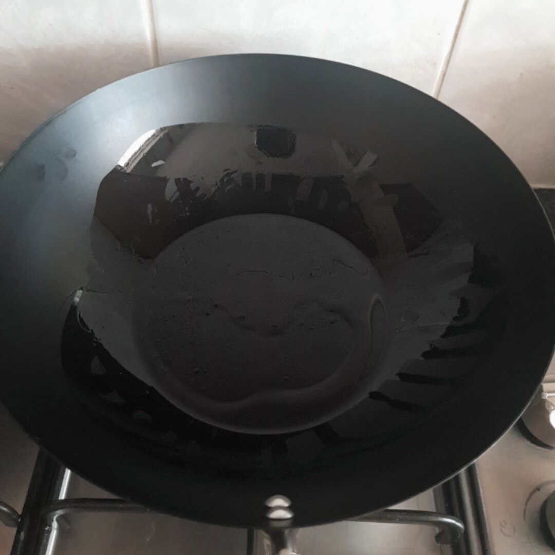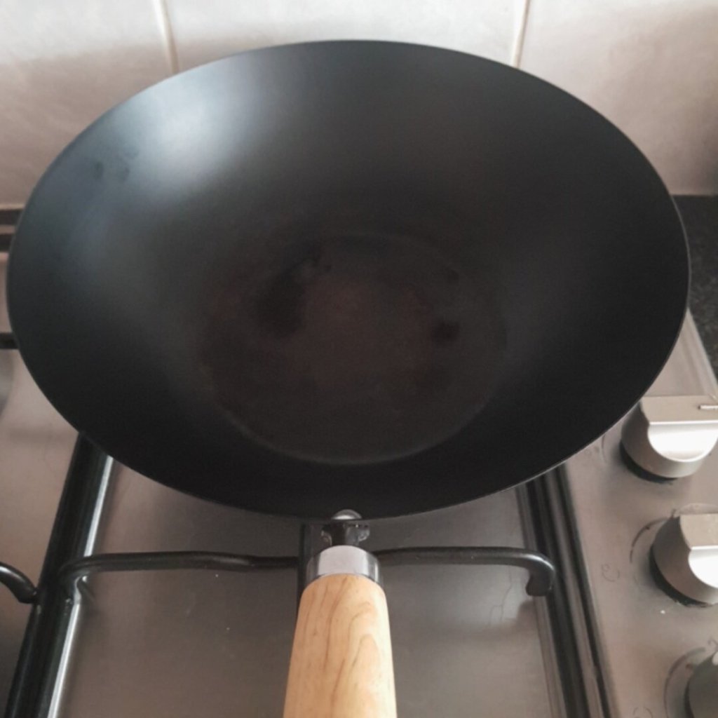 But if you leave it, when it’s cold, some food crumbs or sauce will stick, then put hot water and turn the gas on until you see smoke from water, then turn it off, use spatula to scrub the sticking food which is easy to come off.