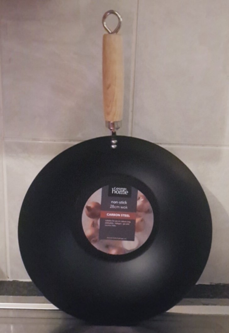 For clearning, when the wok still warm, put the water and use sponge to scrub it.